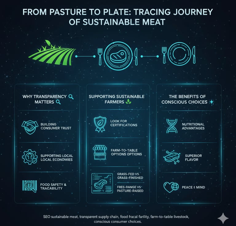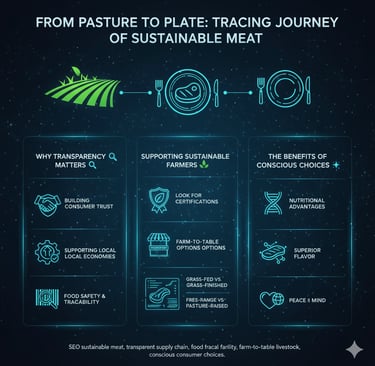 Have you ever looked at a cut of meat in the grocery store and wondered about its story? Where did it come from? How was the animal raised? What impact did its journey have on the environment? In today's complex food system, these questions are more relevant than ever. There's a growing movement towards understanding the complete path from pasture to plate, emphasizing sustainable meat production and a transparent supply chain. For conscious consumers, knowing where your food comes from isn't just a preference; it's a priority. Let's explore why transparency matters and how you can support farmers dedicated to producing high-quality, ethically raised meat. The Power of Knowing: Why Transparency Matters The industrialization of our food system has, in many ways, distanced us from the origins of our meals. This distance can breed uncertainty regarding animal welfare, environmental impact, and even the nutritional quality of what we eat. A transparent supply chain in the meat industry addresses these concerns head-on. Building Consumer Trust: When farmers are open about their practices, from how animals are fed and housed to processing methods, it fosters immense consumer trust. This trust is invaluable in an age where food scandals and ethical debates are common. Ensuring Ethical Practices: Transparency allows consumers to verify that the meat they purchase aligns with their values concerning animal welfare and environmental stewardship. It holds producers accountable. Supporting Local Economies: A transparent supply chain often highlights local meat sourcing, which directly benefits regional farmers and keeps money within the community. Food Safety and Traceability: In the event of a food safety concern, a fully transparent system ensures food traceability, allowing for quick identification of the source and minimizing widespread issues. Identifying and Supporting Sustainable Farmers So, how can you, as a consumer, navigate the market and find meat that meets your ethical and sustainable criteria? Look for Certifications: Third-party certifications are excellent indicators of specific standards. Labels like "Certified Humane," "Animal Welfare Approved," "Organic," or "Grass-fed Certified" verify that certain practices were followed. Always research what these certifications truly mean. Seek Out "Farm-to-Table" Options: The farm-to-table livestock movement is all about direct connections. Farmers' Markets: Your local farmers' market is an ideal place to meet farmers face-to-face. Ask questions about their farming methods, feed, and animal care. This direct interaction is the epitome of transparency. Community Supported Agriculture (CSA): Join a meat CSA, where you purchase a share directly from a farmer and receive regular deliveries of their products. This builds a direct relationship and often provides opportunities for farm visits. Local Butchers: Develop a relationship with a local butcher who sources from nearby sustainable farms. They often have deep knowledge of their suppliers and can provide details about the meat's origin. Understand Labels (and Misleading Terms): Be an educated shopper. "Grass-fed" vs. "Grass-finished": True grass-fed benefits come from animals that have consumed only grass and forage their entire lives (grass-finished). Some "grass-fed" claims might mean the animals ate grass for part of their lives but were finished on grain. "Free-range" vs. "Pasture-raised": While "free-range" implies outdoor access, "pasture-raised" generally indicates more extensive time spent on pasture with foraging opportunities, especially for poultry. "No Added Hormones" / "Antibiotic-Free": These are good, but combine them with other certifications for a fuller picture of animal welfare and sustainability. Visit the Farm (if possible): Many sustainable farms offer tours or open house events. Seeing the animals and the environment firsthand is the ultimate form of transparency and a fantastic way to connect with your food source. The Benefits of Conscious Choices Choosing sustainable meat production isn't just good for the animals and the planet; it's also often beneficial for your health and palate. Nutritional Advantages: Grass-fed benefits are well-documented, including higher levels of Omega-3 fatty acids, conjugated linoleic acid (CLA), and various vitamins and antioxidants compared to grain-fed alternatives. Superior Flavor: Many argue that ethically raised animals, especially those with diverse diets and opportunities to move, produce meat with a richer, more nuanced flavor profile. Peace of Mind: Knowing that your food comes from a farm that prioritizes animal welfare and environmental health brings a sense of satisfaction and confidence to your plate. Conclusion: Your Plate, Your Power The journey from pasture to plate is a complex one, but with increasing transparency and consumer awareness, it's becoming easier to make informed choices. By seeking out sustainable meat production and engaging with a transparent supply chain, you're not just buying food; you're investing in ethical practices, supporting local communities, and promoting a healthier planet. Every conscious choice you make at the grocery store or farmers' market helps shape the future of our food system, proving that truly, your plate has power.